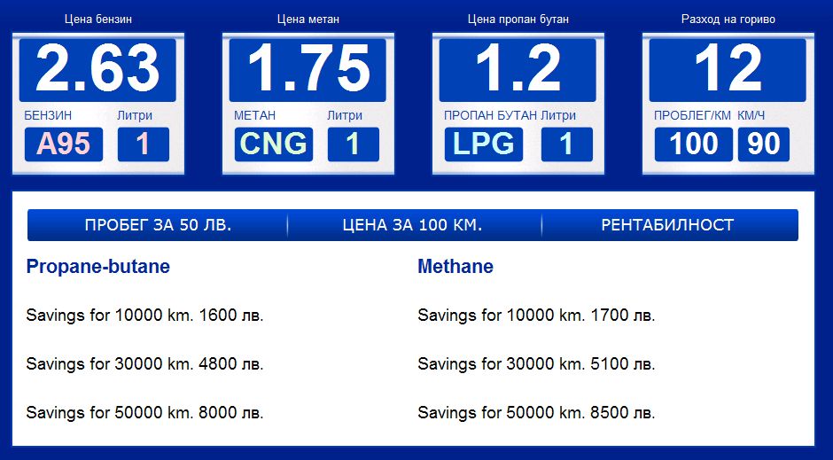 Според мен зависи колко хил.км. изминаваш за година да речем. Ако търкаляш повечеко да речем 20-25-30 000км. и нагоре в годината, може да се замислиш и за метанов инжекцион. Бутилките за метан си ги имаш, сменя се само предната част, в коша на движока...