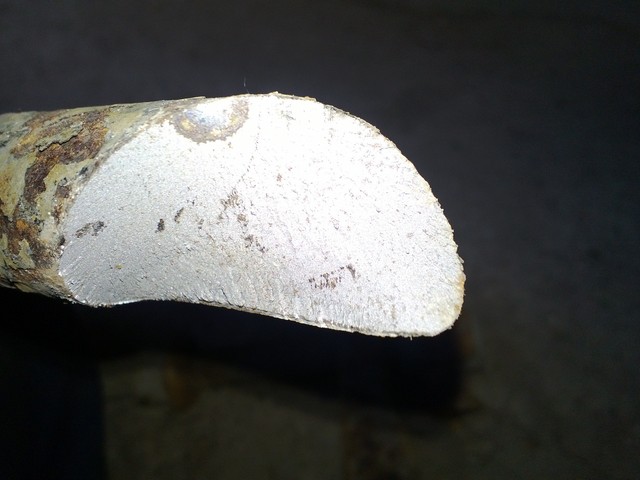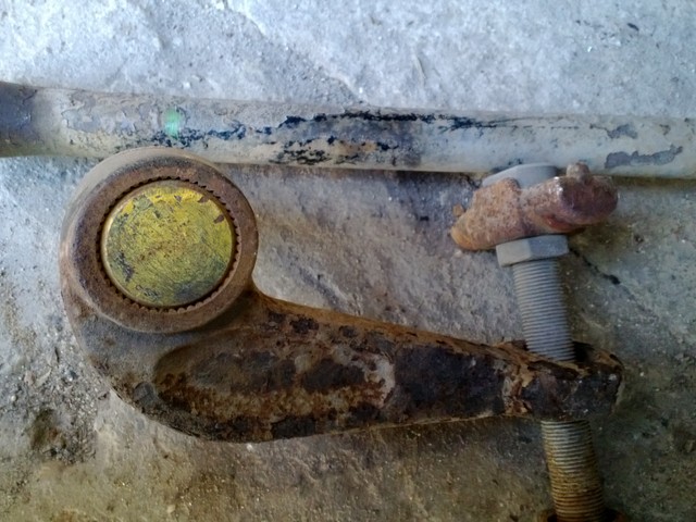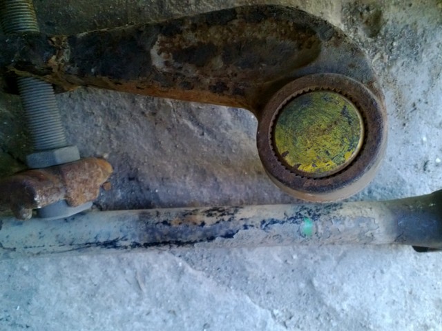Продължение. Вижда се, че торсиона е имал някакъв стар дефект. Започвам търсенето на нов торсион. Има маркировка със зелена боя, но никъде не открих маркировка L. Гайката за регулиране на натяга на торсиона още не съм я развил, че забравих да измеря разстоянието до края на болта. Този болт има монтирана "Т"-образна основа и се вади с леко повдигане и завъртане докато излезе.