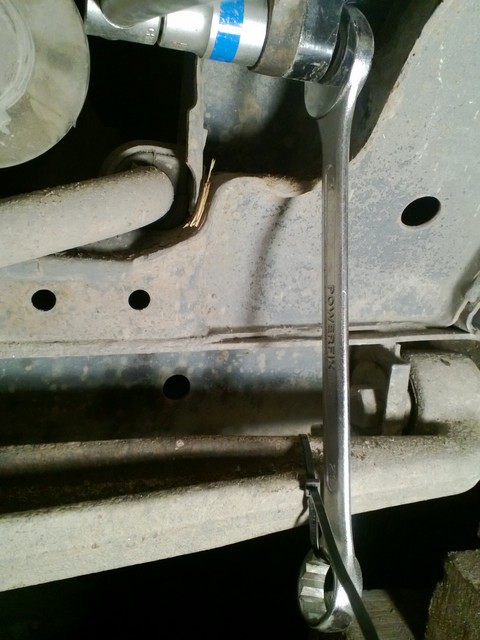 2. Демонтаж болт /заден/ за закрепване на горен носач към каркаса на окачването. /камък 18 и ключ 18 за законтряне/