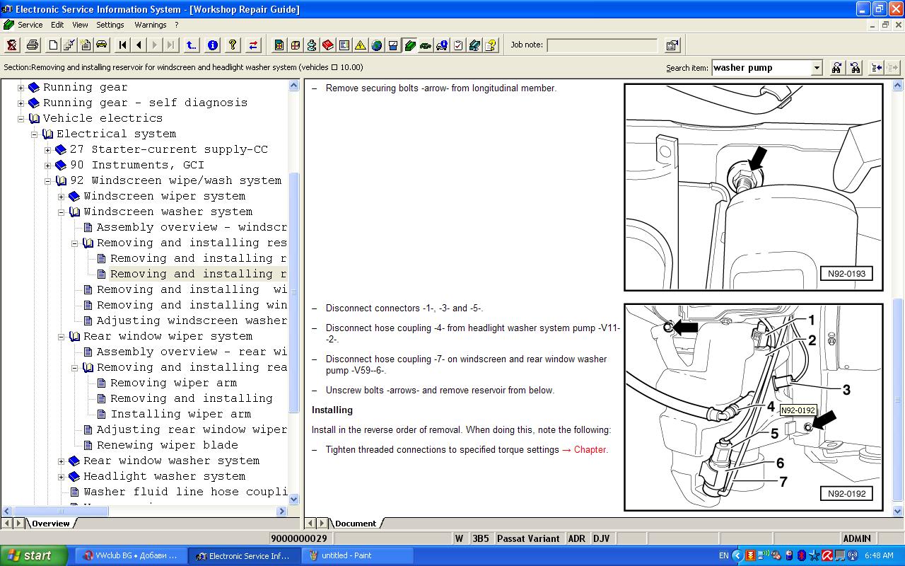 Passat B5.5 Казанче чистачки-теч. Помпа. Снимки