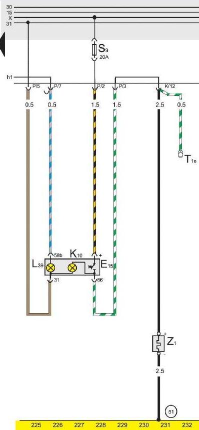 Сега едната крушка,която е за габарит всъщност е светодиод и рабои между 31 и 58b като 31 е маса а 58b е плюс при габарит.Другата крушка свети между 31 (маса) и 75H - при връзка с 75h светва.