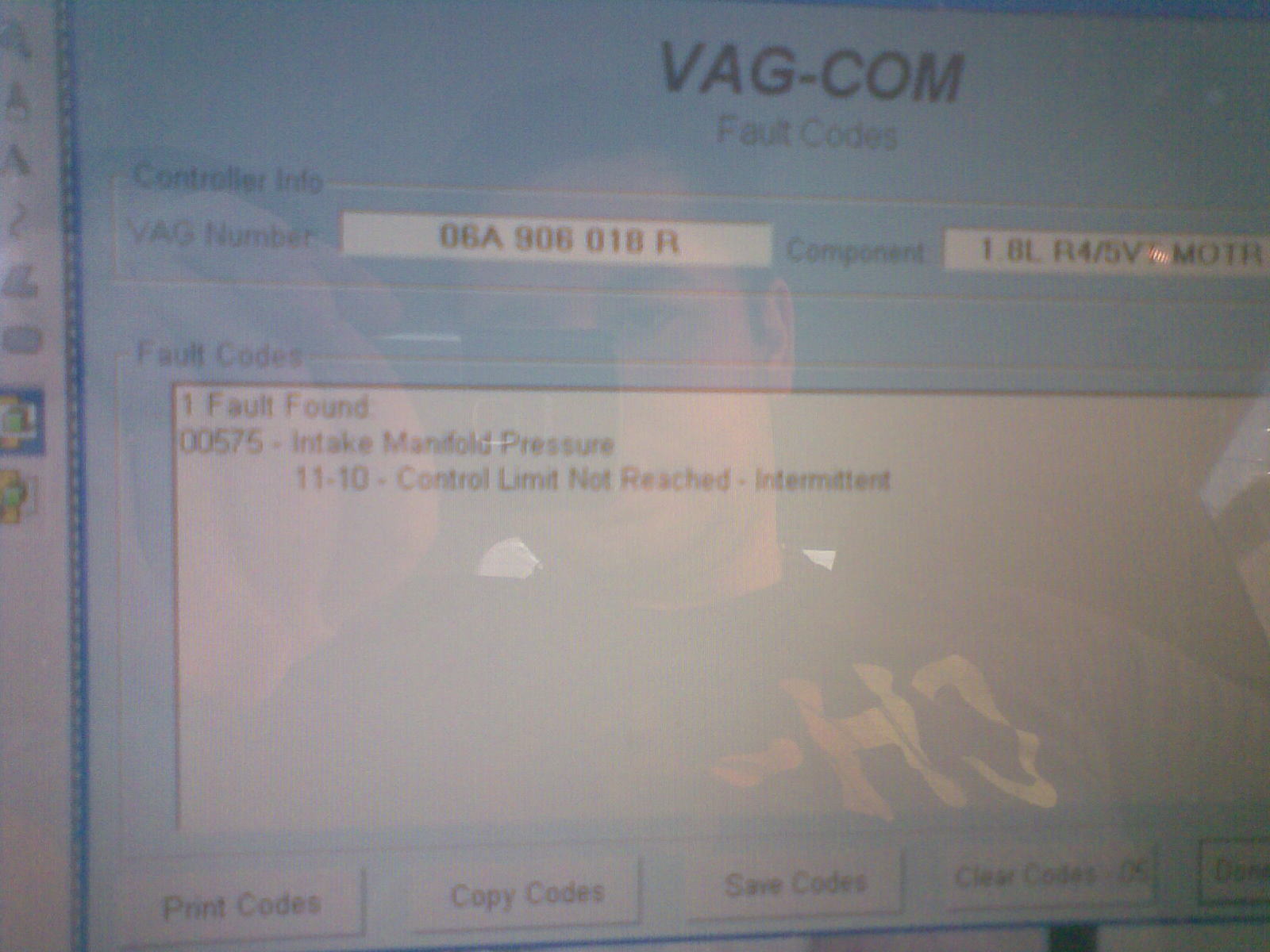 след вагкома резултата е че постоянно си опитва да си корегира аванса /при работа на място... можеби в движение ще е още по голямо/ показва грешка 00575
