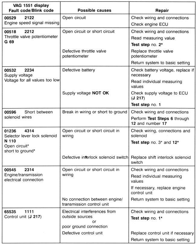 Possible causes:Open circuit or short circuit in wiring. No connection between engine/transmission control unit."