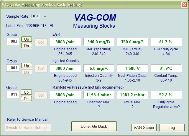 В пространството има доста изписано по темата и аз съм изчел почти всичко. Целта на темата е да се онагледят показанията. Конкретният случай е мотор 1,9ТДИ 110к.с. (AFN). Ще постна няколко снимки, за да се види работата на по-важните системи. Показанията са в норма, къде трябва да се оптимизират и до какво ще доведе това?
