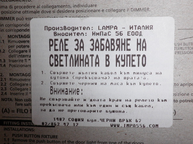 При мен трябва да светят и задните два плафона на купето на колонките ,защото алармата ми проверява затворени ли са вратите и чак тогава се включва. И понеже осветлението по-бавно загасва ,следва воя на алармата зад гърба ми. Наложи се да намаля капацитета на кондензатора обаче става експериментално.Желая Ви успех на който му се занимава