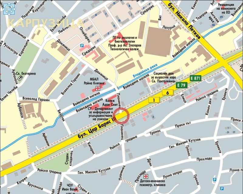 Да , Търси маршрут е опцията , въведи Благоевград - Кнежа в поленцата и ще ти покаже точно пътя през околовръстното на София , после с дабъл клик си приближаваш картата да видиш по-детайлно. С влачене с левия бутон можеш да си я местиш.