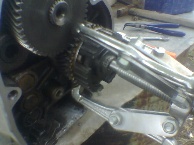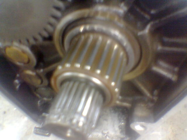външното колело е свалено вече това което се вижда тук е синхронизатора зад него вътрешното колело то се вади с издърпване само и лагера ако се е запазил цял излиза заедно с колелото