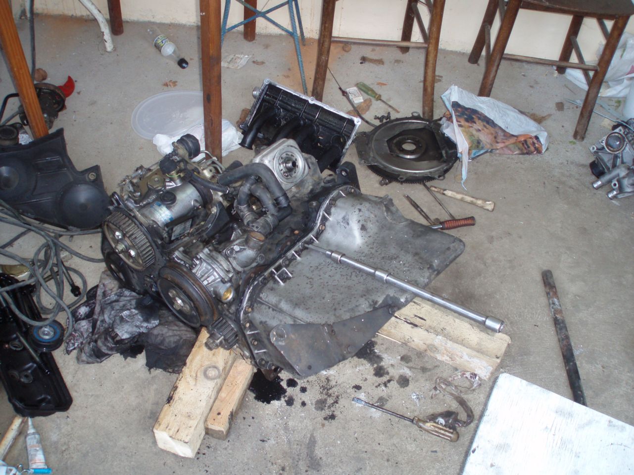 И така мотора вече е вън от коша,разглабянето продължава.