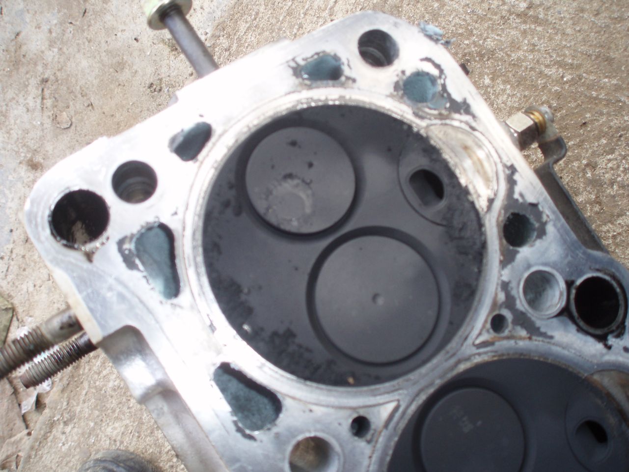 И понеже буса се намира в едно село,което е на 40 км от град Видин,си поръчах по един приятел да ми купи гарнитурата.Пораженията по клапана са поносими,както и нараняванията по главата и трети цилиндър,и по мнението на майстора който ми отвори двигателя,решихме да изчистим парчетата и нагара по цилиндрите и да го затваряме.Тук е мястото да спомена ,че гарнитурата ми струваше 53лв. и някакви стотинки,а майстора ми взе 130лв за операцията.