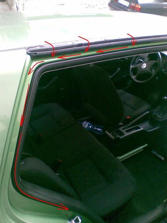 Колата е Голф 4 1,4, няма люк, не е удряна, подкалниците са чисти, тапите отдолу залепени, от антената не влиза вода, уплътненията са здрави и на скоро съм ги пръскал със силиконов спрей отвътре и отвън. Вода продължава да влиза и по всичко личи, че тя просто минава през уплъненията.