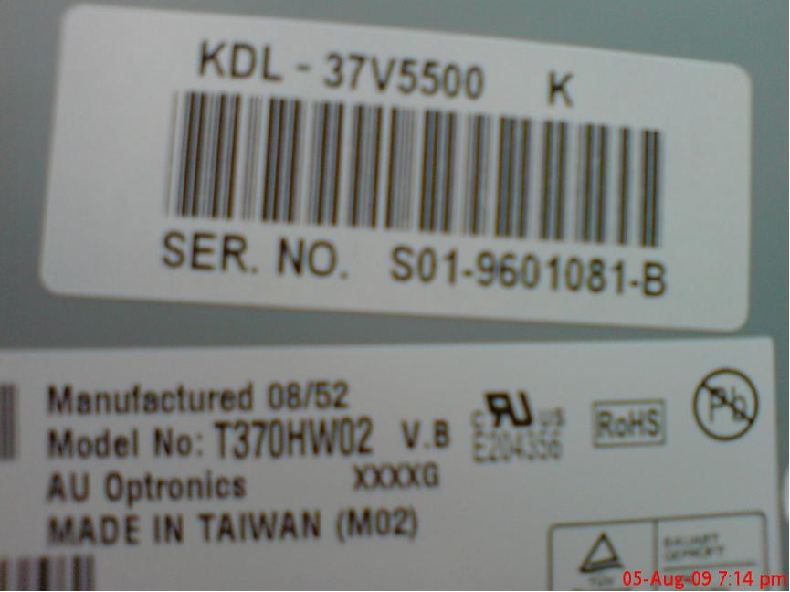 Това е снимка на вътрешността на панела на LCD Sony 37V5500, правил съм я в сервиз. Правен е в Тайван, нищо притеснително. Притеснението ми идва от фирмата производител. Аз лично предпочитам да имат 100Hz, намяват размазването на картината забележимо при бързите сцени/особенно се забелязва ако пуснеш футболна среща/. А в домашни условия разлика между Full HD и HD Ready, трудно може да направиш. Поради простата причина че няма от къде да намираш филми с високо качество в изобилие, а Blu Ray Player едва ли ти се купува, като чета поста ти.