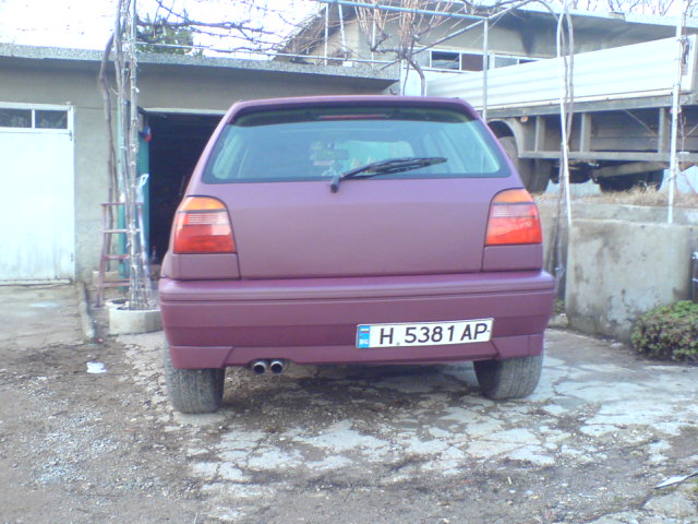 Колега, ето и малко препоръки или критики, не знам, как би ги нарекъл. Номера така в дясно ли ще стои, сложи го в средата! Бед лука е станал много грозен, ако ти се занимава го направи на ново, това наистина е супер грозно, извинявам се за директните критики, но е така. Ако питаш мен, въобще без бед лук щеше да бъде много по-добре, стига с тези намръщени голфове, но колата е твоя, аз просто си изказвам мнението. Цвета също не ми харесва, трябва да е нещо по-тъмно и малко по-червено примерно.