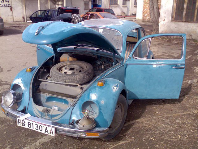Синята я даде за 1800 лв, а за черната искаше още 500. Ама черната освен за части, май за друго не става. А синята е била боядисана, но нещо боята почнала да се предава на места и започнали да я подготвят за освежаване / почти готова е за боядисване/ Та се чудя дали да и сменям цвета или да си оставя същия, който всъщност много ми харесва. Ще се стремя да добие що годе оригинален вид, така че този кафевия металик, май няма да пасне много / иначе е убийствен цвят/.