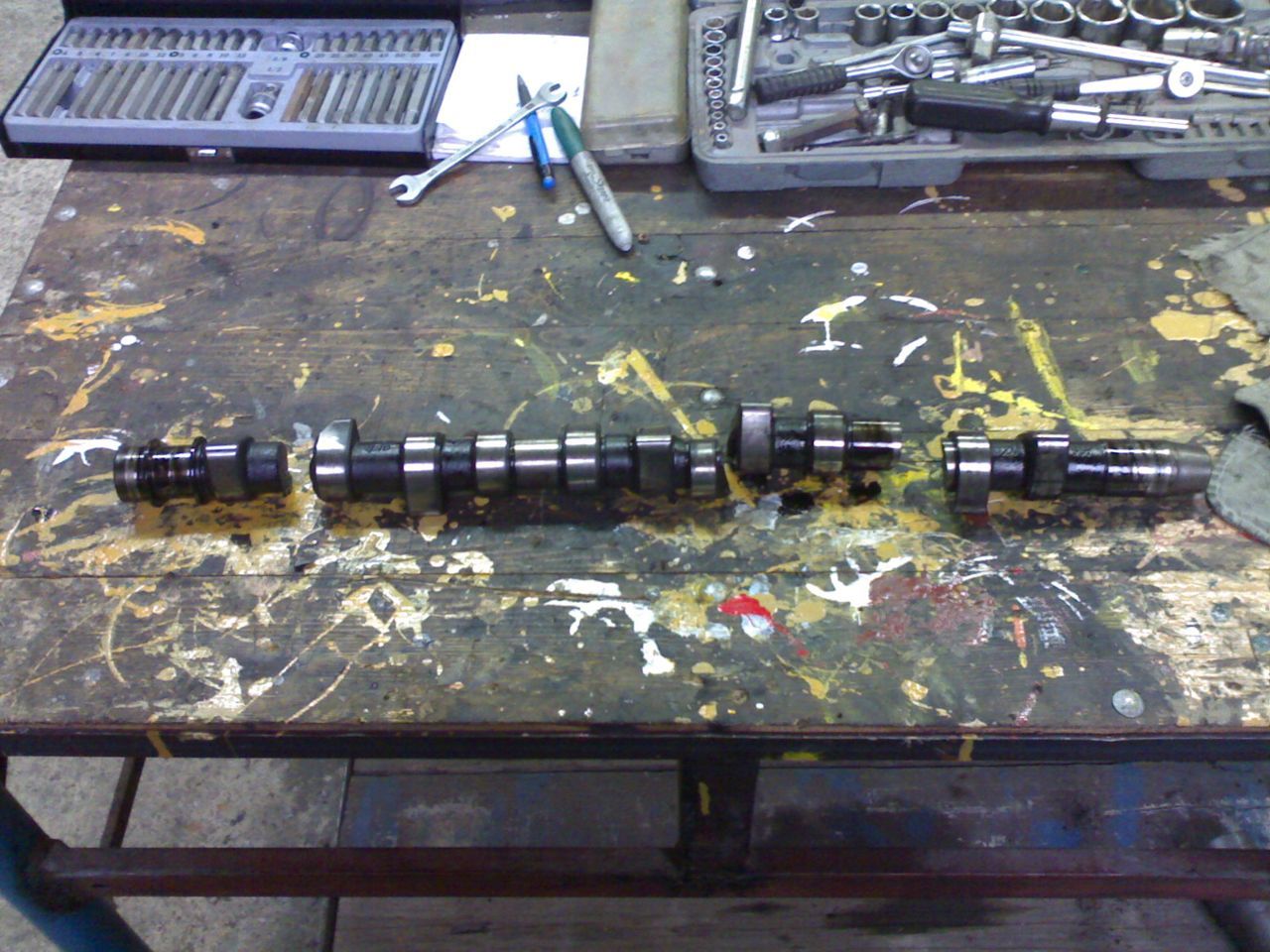 В моменра бащата го разглобява на работата. Ще слагам още снимки утре на клапаните и буталата. Както се вижда на снимките вала е на 5 парчета. Искам информация за този двигател. Благодаря
