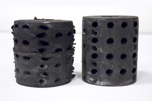 фи 90/300мм стигна за двете части на предния тампон на мотора, голямата част от задния тампон(малката умишлено я оставям оригиналната) и двата големи тампона на носачите. Имах малко от черния полиуретан, който идва по мек, и врътнах едни биалетки. По-твърд е от гумения тампон, но с червения щеше да стане по-добре... Може би ще взема още една заготовка за да направя малките тампони на носача, на стабилизиращата щанга и по-твърди биалетки.