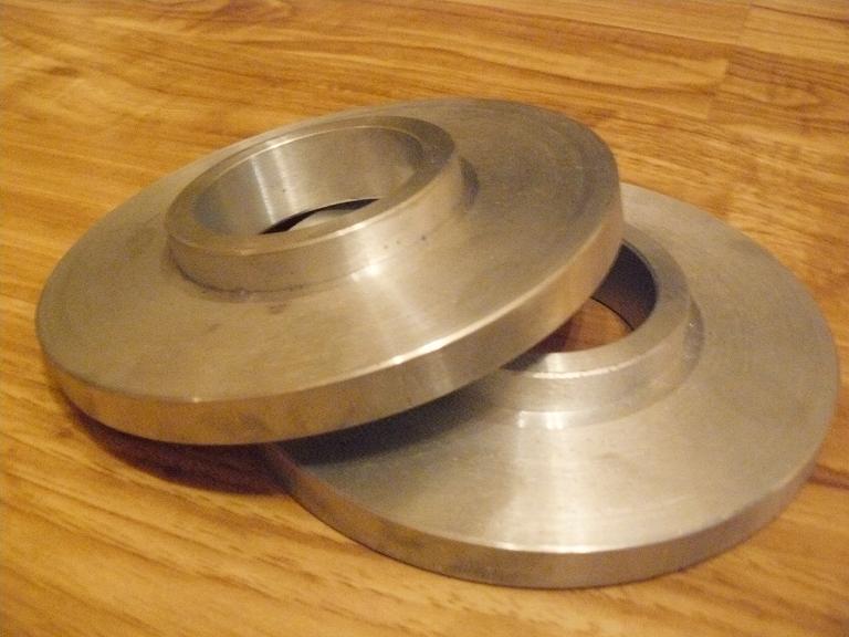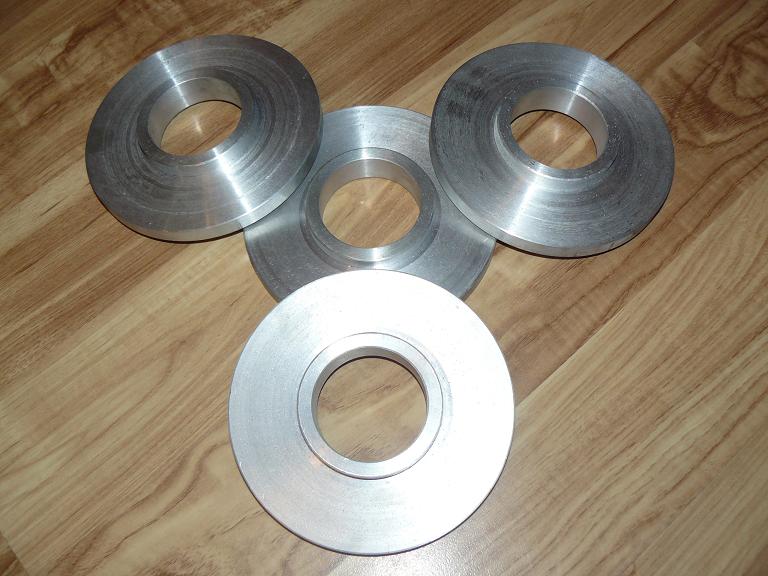 Решено! Отидох на леяр и той ми отля алуминийя с диаметър 150мм. и дебелина 25мм. след това с готовия материал при стругар и престъргахме парчетата до необходимите размери. Ако се водим по скицата по горе: