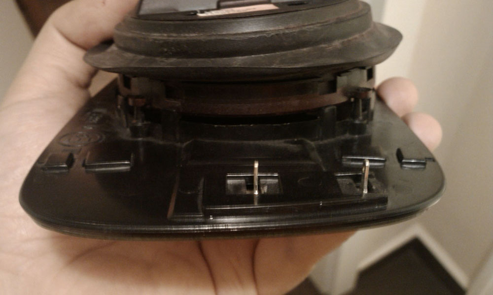 Аз бутам огледалото така че външния край да излезе максимално навън. После бъркам между стъклото и корубата с малка отвека. Като откопчея 2 от 4-те щифтчета стклото се маха