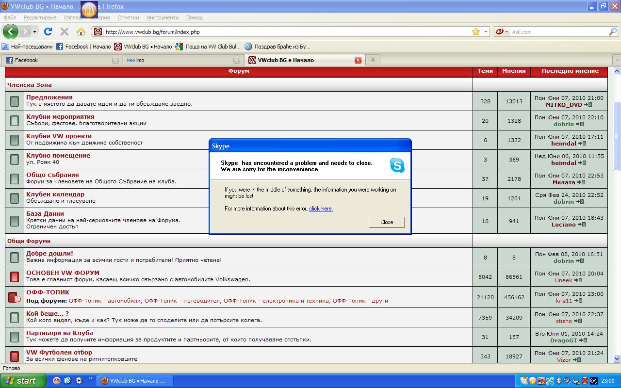 Сега както казаха по горе колегите си изисти регистрите,до сега пробелами от такъв характер с него не съм имал,друг вариант е вирусче,може леко да си настинал,там управията е тежка,потърси dr.web,има и други за проверка за вируси
