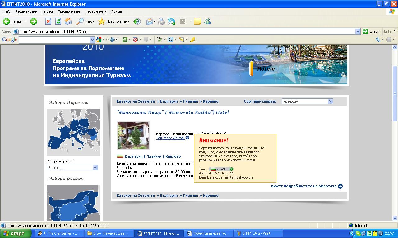 3. Говорих с приятел, работи и живее в Карлово. "Минковата къща" не знае, ако някой знае нека пише. Потърсих хотел "Наслада 2" в гугъл за Балчик. "Наслада" има, "Наслада 2" - не. Явно са снимали обекти, измислят нови имена и...