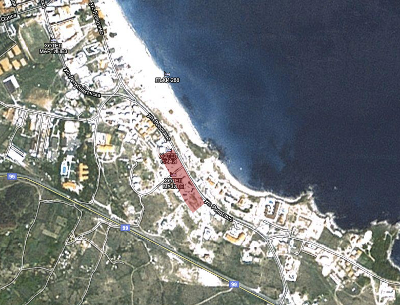Миналата ходина бяхме в един комплекс с апартаменти. Не е хотелски комплекс, апартаментите са частни и хората ги дават под наем повечето време от лятото като не са там, затова си нямаше име миналата година. Намира се в тази част (виж червената зона):