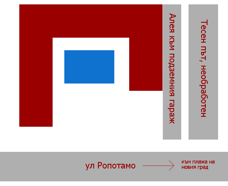 Мисля, че най добрия ориентир за мястото е че като застанеш пред него от дясно на комплекса е входа към подземния гараж и точно до оградата започва някакъв малък път, тогава беше май само пръст но вече може да е друго.