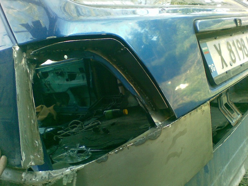 Между другото се наложи да махна страничната "раздувка" понеже като се преместихме преди два три месеца от моя гараж в сервиз "Каменец" ( за което дължим на шефа голяааама благодарност), раздувката се оказа малко крива като я огледах по отдалече. Затова реших да докарам задницата до край.