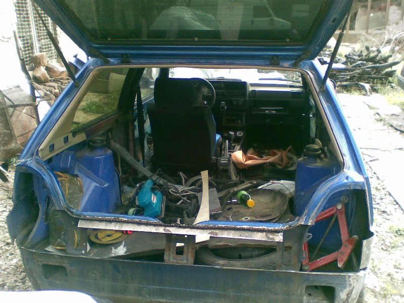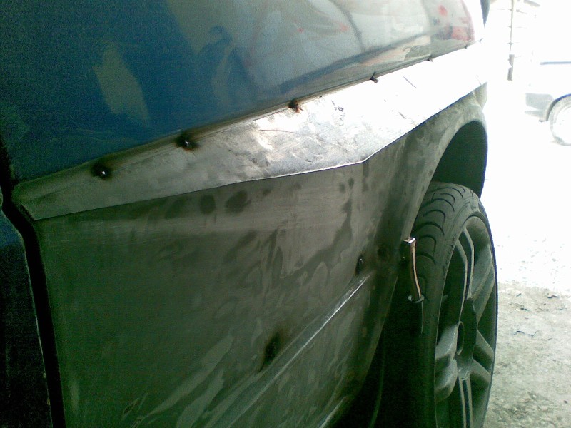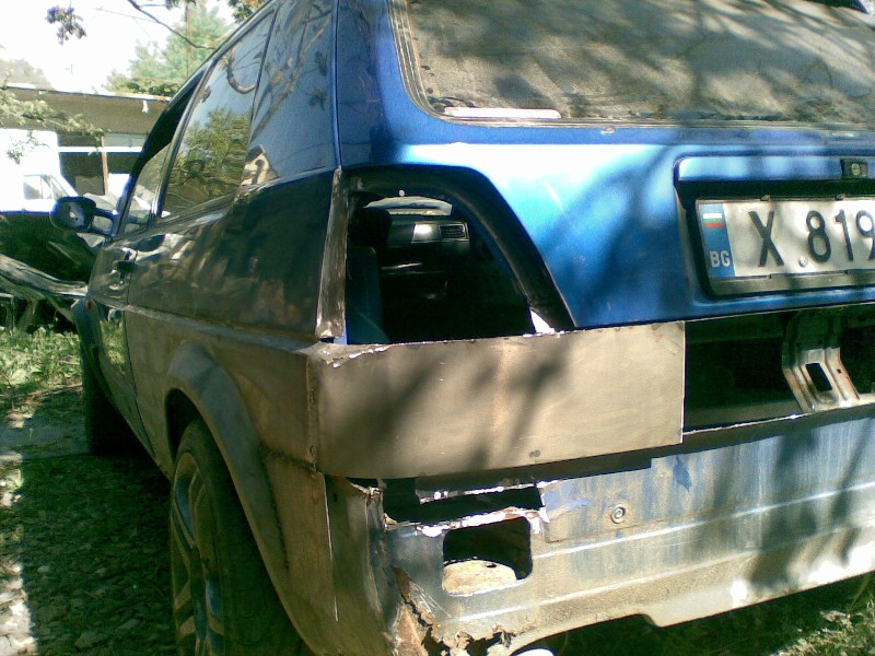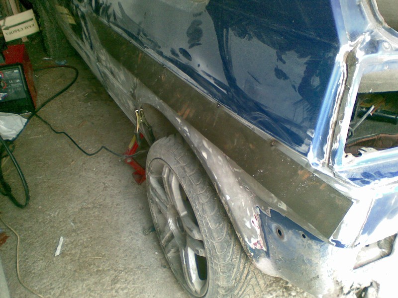 Между другото се наложи да махна страничната "раздувка" понеже като се преместихме преди два три месеца от моя гараж в сервиз "Каменец" ( за което дължим на шефа голяааама благодарност), раздувката се оказа малко крива като я огледах по отдалече. Затова реших да докарам задницата до край.