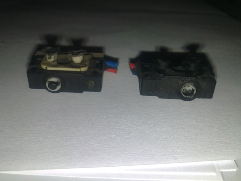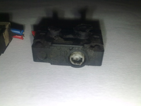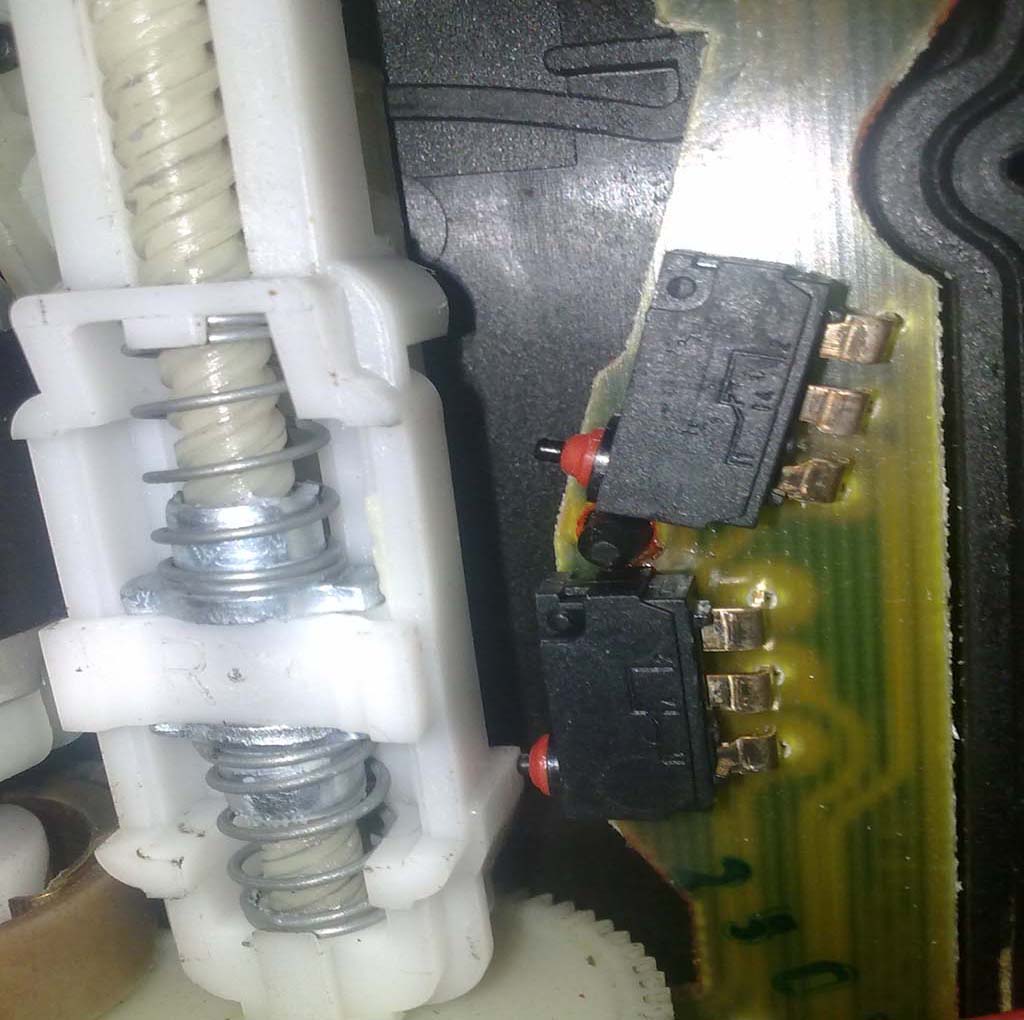 ето как изглежда и пасажерската брава,забелязах че двете микрета за ключа липсват а от другите две които има само едното се натиска което се вижда и на снимката ,а механизама просто не работи и не натиска второто ,пробвах да натисна второто с отверка и свързах буксите но за жалост алармата пак продължи да свири,моля някой да каже кое микре е за алармата?