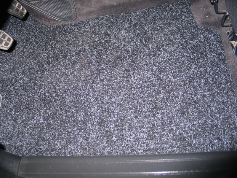 Та там се спряхме на един материал половината мокет, другата половина гума, доста стабилен на вид, а иначе ще видим в бъдеще. Купуваш мокета, изрязваш огледално по изработените шаблони с масивна ножица и слагаш в колата. Ефекта е перфектно пасващи стелки, които не помръдват и милиметър, до някой ден може и да ги обкантя, въпреки, че този материал не се нищи. Ето и снимките:)