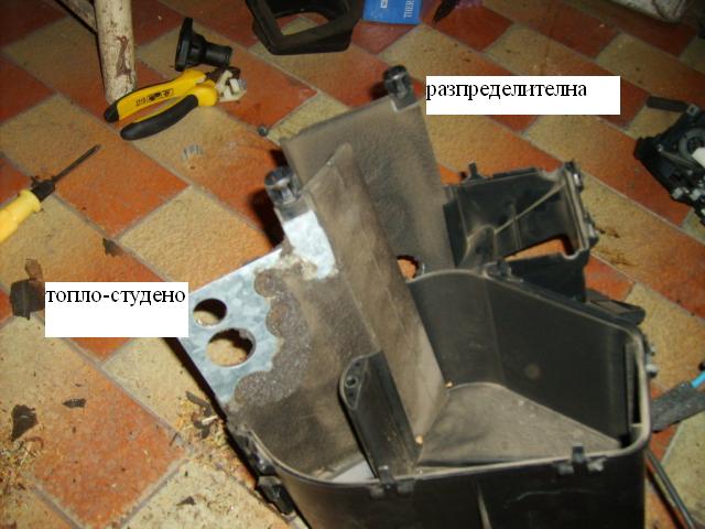 Днес и аз се заех с тази процедура , но като махнах всичко което сте описали ( жабка, барчето под нея , въздухоотвода ) и стигнах единствено и само до клапата която регулира топло и студено , а при мен парно си има , т.е. духа си топло , да не казвам и горещо , но проблема е , че не духа в краката и затова се захванах днес с това , но ето , че нищо не направих :banghead: , къде трябва да ги търся тези клапи , които регулират посоките на въздуха ( стъкло , крака и т.н. ) :roll:
