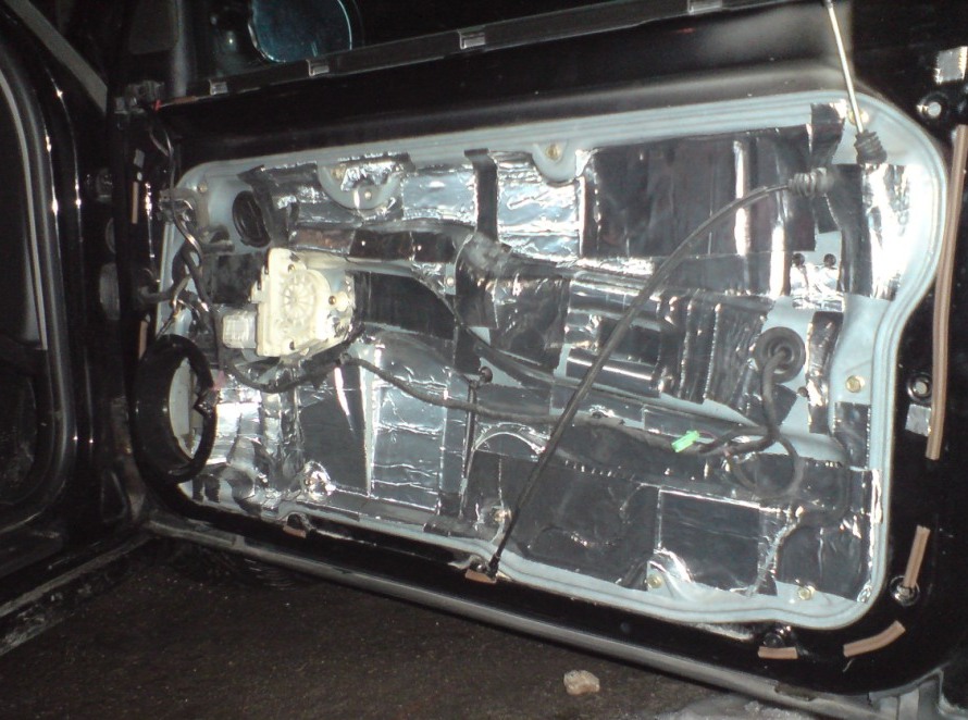 Изолацията на вратите. Има още 1 час облепяне, но толкова за днес. Утре ще се монтират и ще се дооправя.