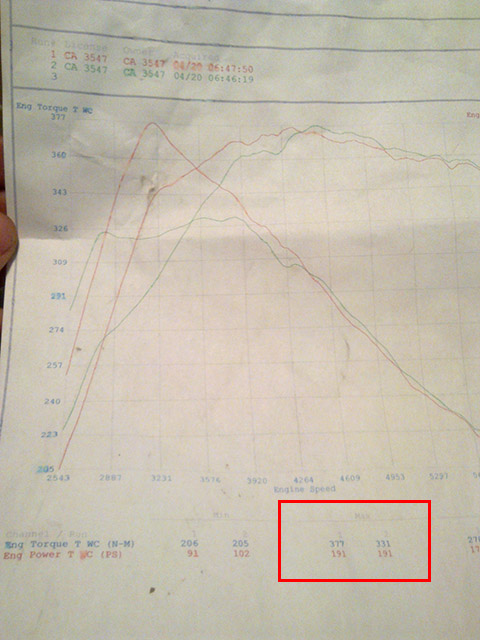 Дори и да извади над 210к.с., то те ще са някакви пикови коне на около ~4800об/мин и после графиката ще пада и ефекта ще е като на дизелов автомобил, на Кирчето графиката е точно такава след 4800-5000об/мин конете падат сериозно, а като даваш газ оборотите падат само един път под 4800-5000об/мин, а именно при превключването от 1-ва скорост на 2-ра и излиза, че давайки газ вървиш като