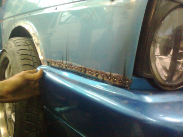 Та веднага започнах с разглобяването на колата . Реших да издуя малко веждите та да мога да сложа джанти с по-голямо J. Ама сега ако можех да се върна щях още малко да ди дръпна навън