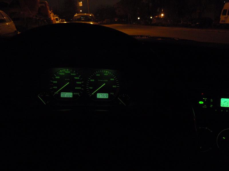 Здравеите колеги,смених старите крушки,които бяха 1,1W със 2W каквито един от колегите каза че трябва да са, и сега се вижда доста по добре.Благодаря на всички които се включиха в разрешаването на проблемат ми, форумчето е страхотно.Колегата по горе се е постарал доста за таблото си,много е добро.Относно идеята за доди-страхотна е, но може би друг пат ще го тунинговам.Ето и снимка с резултата от вашата помощ колеги със новите крушки на 2W.Благодаря.