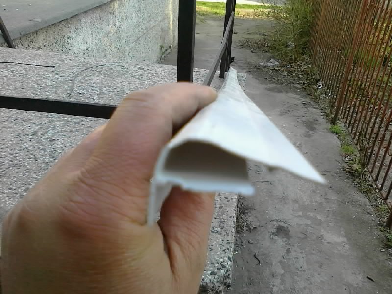 Малко снимки:Мостра от ПВЦ-вътрешенен ъгъл за ПВЦ-ламперия купен от магазин за окачени тавани и ламперии-2.50лв.за линеен метър.
