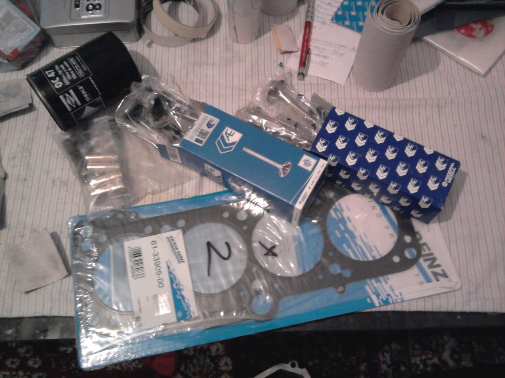 След като се освободи място пак си поръчах някои неща за да действам нататък: нови всмукателни и изпускателни клапани, нови водачи, нови гумички, гарнитура глава, а и маслен филтър че забравих да взема като пусках блока да го завия