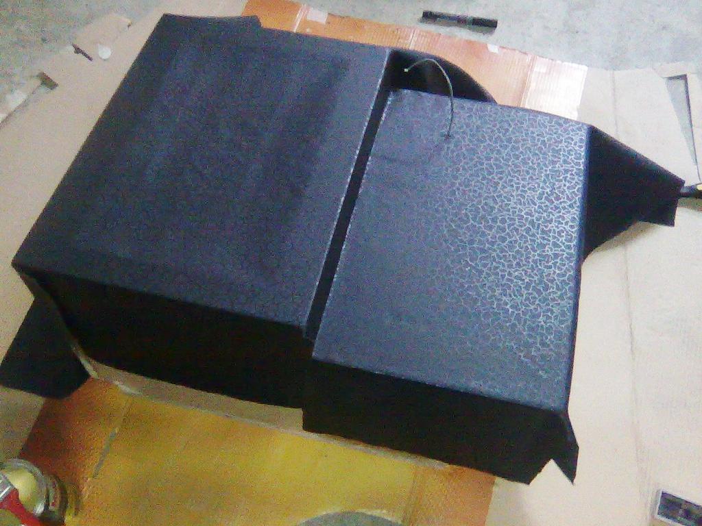 След като е готова кутията отвътре, идва ред и на тапицирането отвън. За целта също се сдобих с оригиналния Vibe материал(нещо между кожа и гума):