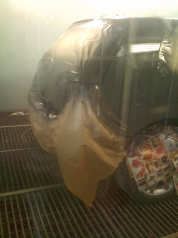 Задните панели - от тавана до праговете (включително праговете), багажника и спойлера, а и дръжката защото беше синя.