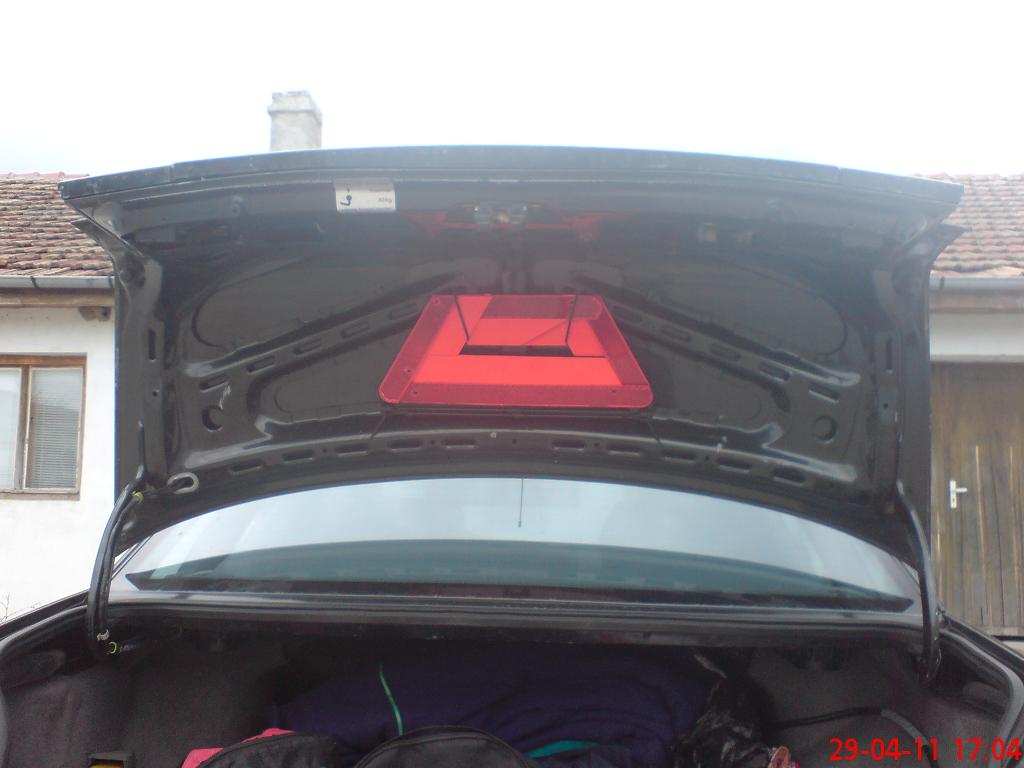 Здравейте, иска ми се вместо триъгълника да лежи до аптечката, да бъде поставен на задния капак, но да има и "по-купешки" (както дядо ми казваше :Mr Green Fun ) вид, за да бъде хем по-пригледно, хем да може да се сваля при нужда без да се развиват болтове или да се наранява цялостта на самия багажник... За съжаление повечето Б3-ки нямат това платнено уплътнение и от вътрешната страна и това усложнява донякъде гимнастиката и закрепващите механизми трябва да бъдат по-изчистени... Предполагам, че и за Венто може да бъде приложена същата идея. Очаквам мнения, каквито и да са и благодаря предварително. :beer