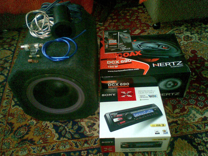 Отначало корите нямаха джобове за говорители, имаше един радио-касетофон където касетофона не работеше и копчето за усилване/намаляне беше прецакано,ти го усилиш то се намаля и обратното, трябваше съвсем леко и внимателно да се върти :Mr Green Fun на таблото имах 2 говорителчета едното някакво Сони "поиздънено", а другото не помня какво беше ама не свиреше (беше изгоряло).Отзад на провисналата ми кора имаше 2 "поиздъхнали" елипси Тъндър и това беше. За първо време взех един трансмитер за 17-18лв то с него си беше по-скоро набутвация и големи нерви.Първо купих флашка за него оказа се, че не я чете.Намерих у дома една карта памет от една стара мп3-ка и си викам ще я ползвам ама се наложи и четец за карти да си купя и стана дълга и широка а за сметка на това даже трансмитера бъгваше като смениш няколко песни и после трябва да го извадиш и пак да го пъхнеш понеже спираше да свири.