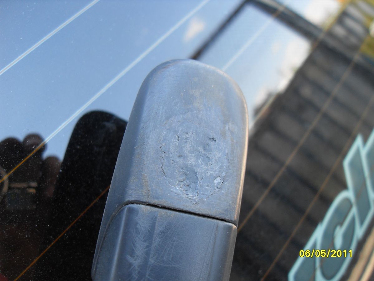 започнах леко по леко да отмятам някое и друго нещо. Като за начало си залепих елементчето на задното стъкло през което излиза чистачката, затапих и мястото на ключалките на предните дръжки поради две причини ... първата - харесва ми много повече без ключалките (лично мнение), втората - бяха счупени патроните и не функционираха изобщо