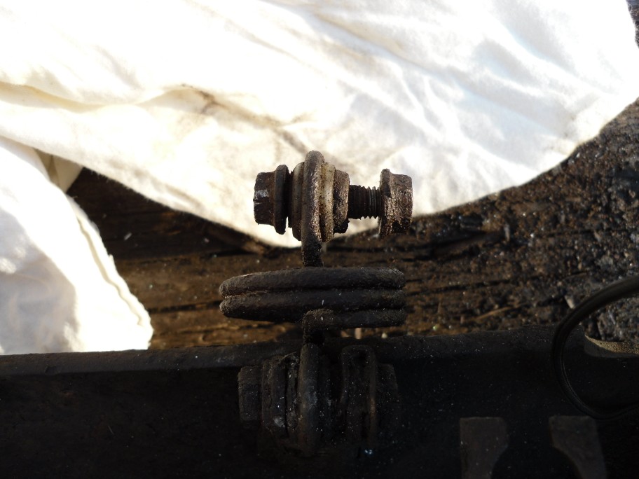 Наскоро смених моите тампони на бората.Цялата процедура ми отне не повече от час.Задният мост не сам го свалял целия.Просто махнах болта подложих дървено трупче между ушите за да има място за работа и избих тампона със секач и набих новия тампон.При избиването със секача първо между моста и тампона се удря за да се нагърчи тампона и после по средата на тампона с як чук докато излезе.Набиването го направих със черупката [външната част на стар лагер] със същия диаметър като металната част на тампона.При набиването влиза много лесно почти до края последните 5-6 мм влиза доста трудно тъй като тампона е конусен но с як чук влиза.