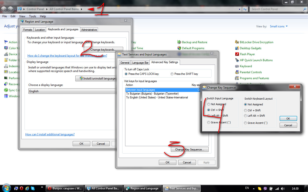 Как се сменя клавиатурата на Уиндоус 7 ултимейт, уж трябвало да е с "контрол + шифт" ама при мен нещо не се получава, сменяше единствено българските клавиатури преди да оставя само бг фонетична и английски само?