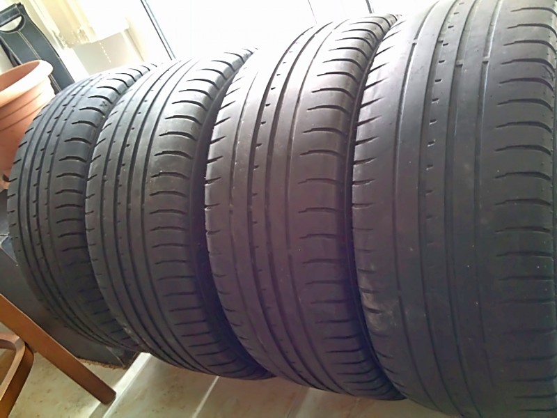 Гумите са 4 еднакви с еднакъв дот 2009-а, но сигурно 2 от тях ще ги махна, защото предна лява и задна дясна са износени във вътрешната части на борда на гумата, което съм чувал, че не е добре да се кара. Може би ще ги сложа първоначално отзад, а след това ще ги заменя с други гуми като продам старите джанти и гуми, защото насъбрах 4 бр джанти и 5 бр. гуми 17-ки.