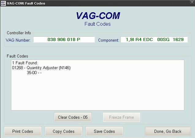Здравейте, колата е Пасат 1,9 TDI Проблема е че на свободен ход понякога има силни вибрации, все едно колата прекъсва. Днес я закачих на диагностика и даде следната грешка:
