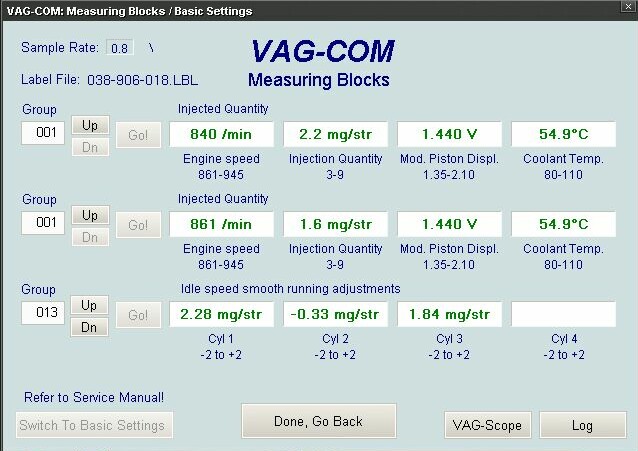 Другото което ми направи впечатление е, че впръскваното количество гориво на свободен ход е по-малко от стандартното 3-9: