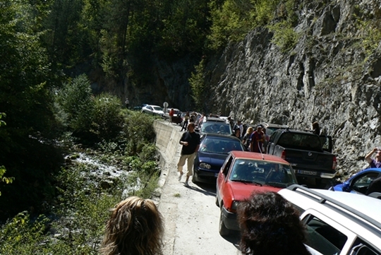 На 23.09.11 в Буйновското ждрело на път към Ягодинската пещера, попаднахме на невероятно задръстване. Самото ждрело е дълго към 10 км, които ние изминахме за около 2 (два) часа. Главните виновници за това бяха няколко камиона, натоварени с иглолистни трупи, които явно бързаха да извозят дървесината. Според някои очевидци, тази сеч е незаконна, защото се извършвала точно в почивните дни. Ще приложа някои снимки, които направихме. Предполагам, че има колеги, които са попаднали на същото задръстване ...