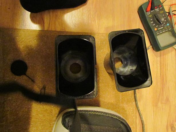 След като монтирах тръбата която трябва да събере лупата към фара и капака на тръбата трябваше да се помисли как да се центрира лупата в тръбата. За да не виси само на задният капак сложих 3 ивици от същото лепило (течният метал) в тръбата под 120 градуса (горе-долу) и ги изпилих така, че лупата да влиза максимално плътно. Пръснах набързо рефлектора (или по-скоро останалото от него) със черен спрей за да стои по-добре от вън. Вижда се и фара събран без крушка (съхне санитарният силикон с който залеих стъклата) и се проветрят през дупката за крушката. Вижда се как стои и гуменият капак за фара. Само му трябва дупка за да минават през него кабелите. Също ще залепя по едно пакетче силика гел отзад за гумения капак за да може да попива влагата която се надявам да не се събира във фара (почти херметически е затворен).