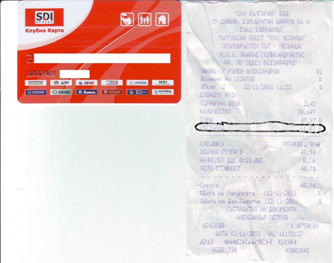 Не че е важно, но преди малко заредих на ЕКО - околовръстното до Чепинци, платих с дебитна карта и ползвах отстъпка. Уловката е, че това засега става САМО с тези карти: