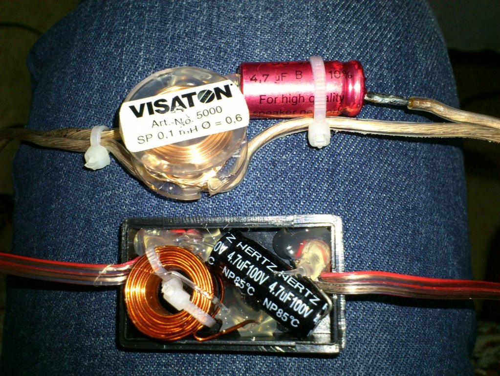 В интерес на истината е добре да се сменят кабелите на баса както и бобинката. Филтъра на високите може да се запази, че дори и кабела защото там консумацията е много малка. Ето как изглеждат оригиналните филтри спрямо моите.